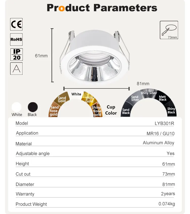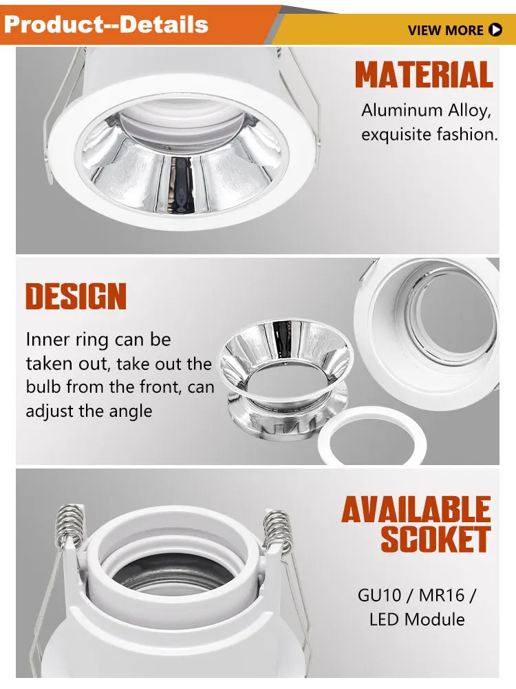 GU10 MR16 Custom embed round die-casting aluminum reflective anti-glare down lights